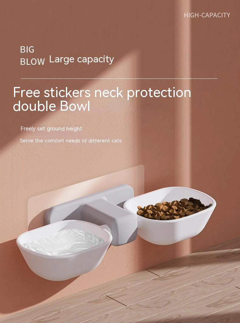 Pet Double Bowl, Dog Food Plastic Drinking Tray Cat Food, Pet Supplies, Accessories Double Cat Bowl Large Capacity Can Be Pasted